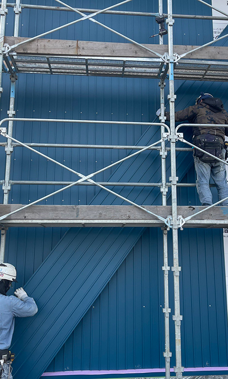 自社での板金加工と、現場で腕を磨いてきた職人の技術力を活かし、「長く安心して使える建物づくり」をトータルにサポートしています。